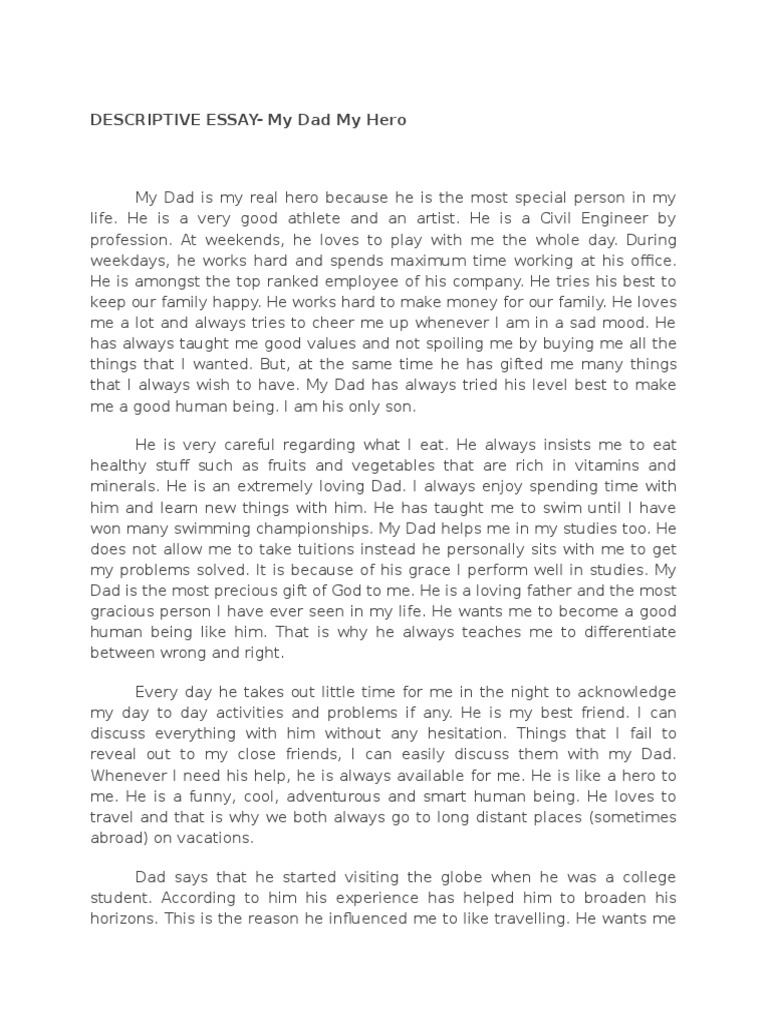 Once you have written down some words, you can begin by compiling descriptive lists for each one. This means that words are chosen carefully, particularly for their relevancy in what descriptive essay to that which you are intending to describe. Why use horse when you can choose stallion? Why not use tempestuous instead of violent? Or why not miserly in place of cheap? Remember, what descriptive essay, if you are describing something, you need to be appealing to the senses of the reader. Explain how the thing smelled, felt, sounded, tasted, or looked. Embellish the moment with senses. If you can describe emotions or feelings related to your topic, you will connect with the reader on a deeper level.